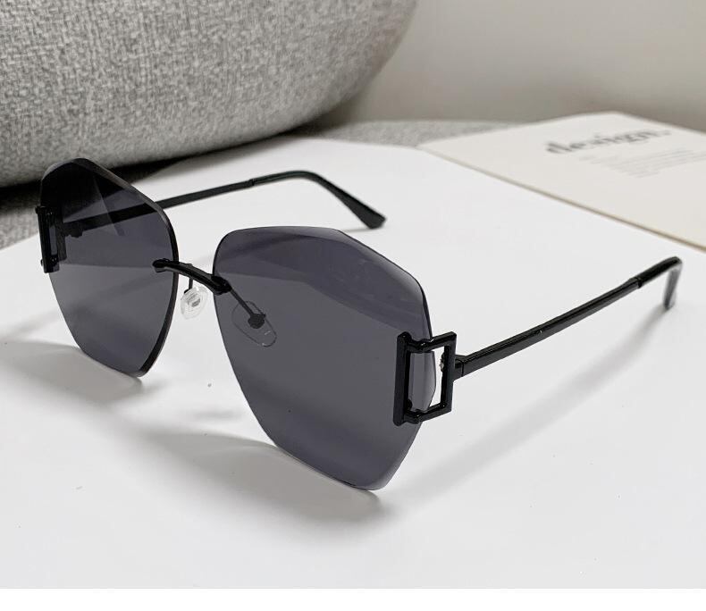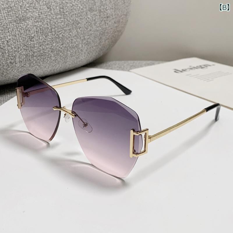サングラス レディース 高級感 UV400 紫外線対策 グラデーション 多角形 ビッグフレーム リムレス メタルフレーム ACレンズ ドライブ レジャー アウトドア 旅行 普段使い おしゃれ エレガント