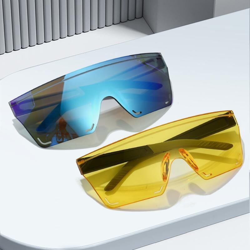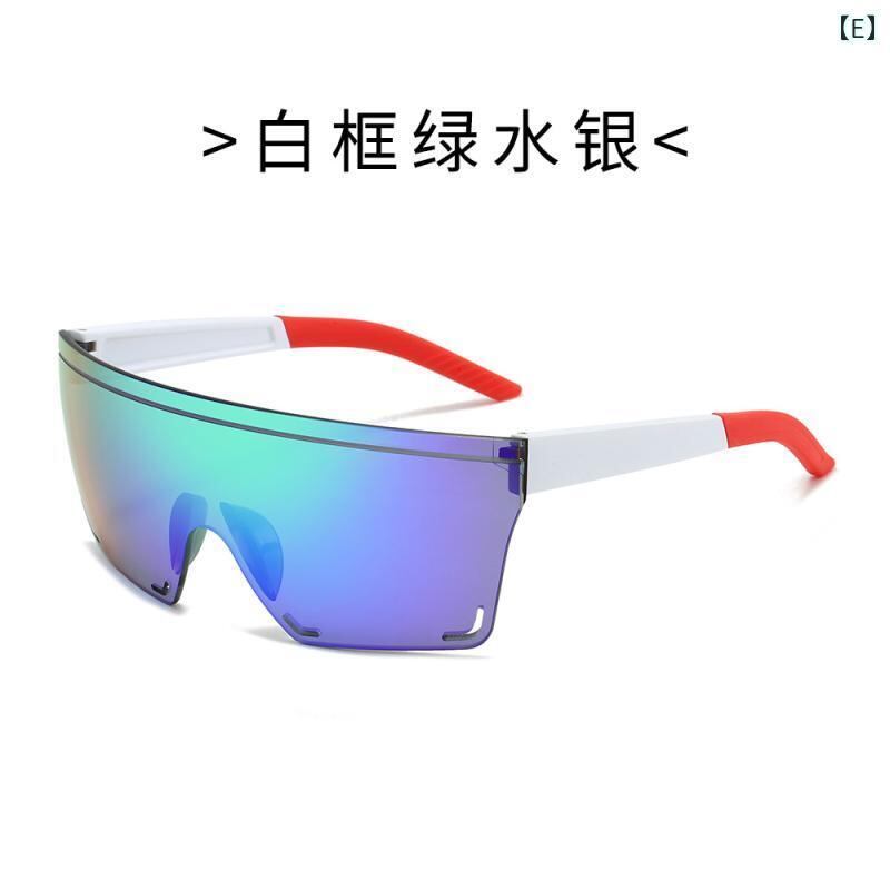 スポーツサングラス 男女兼用 アウトドア サイクリング ドライブ スポーツ観戦用 おしゃれ リムレス ビッグフレーム スクエア 一体型 シールドタイプ ミラーレンズ 軽量 UVカット 紫外線対策 ホワイトフレーム ブラックフレーム