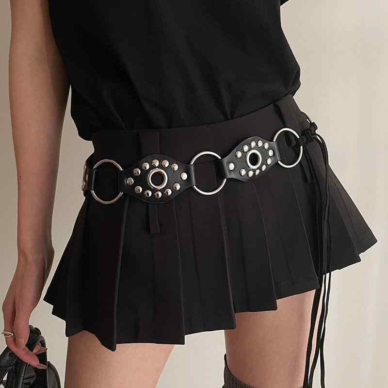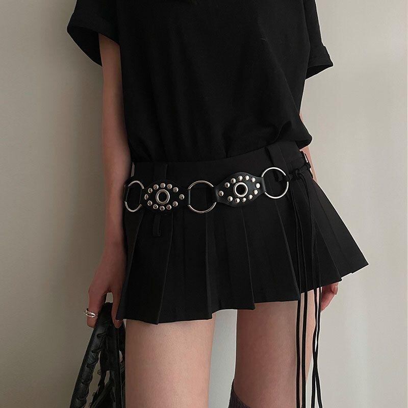 ベルト レディース PUレザー レトロ ヴィンテージ ハトメ編み上げ ウエストベルト マルチリングデザイン 個性的 ストリート カジュアル パンク ヒップホップ ブラック ダークブラウン