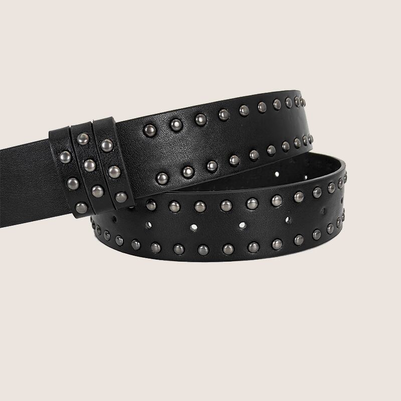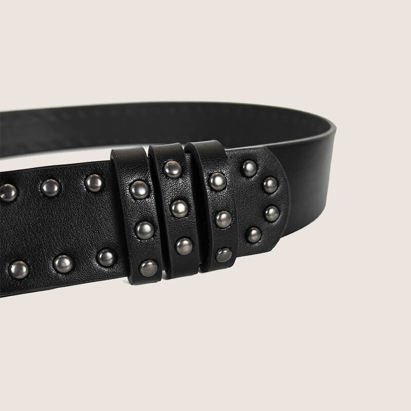 ・デザイン: 馬頭バックル、黒スタッズ装飾
