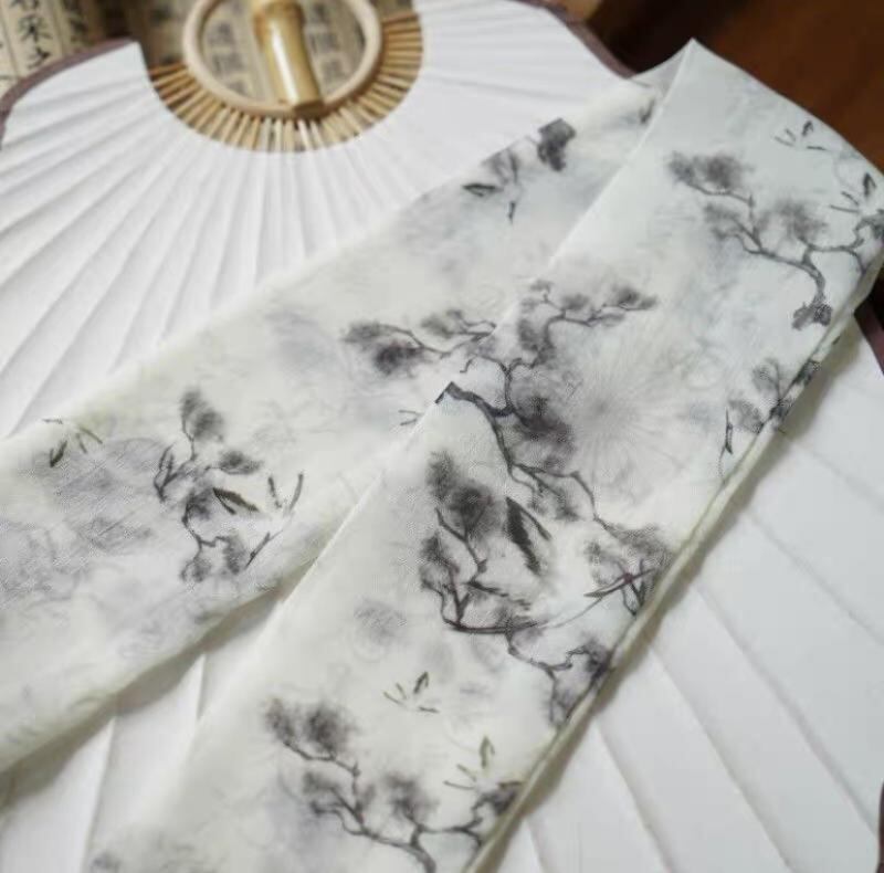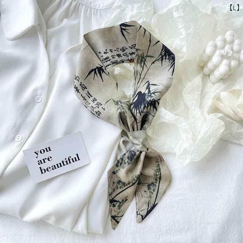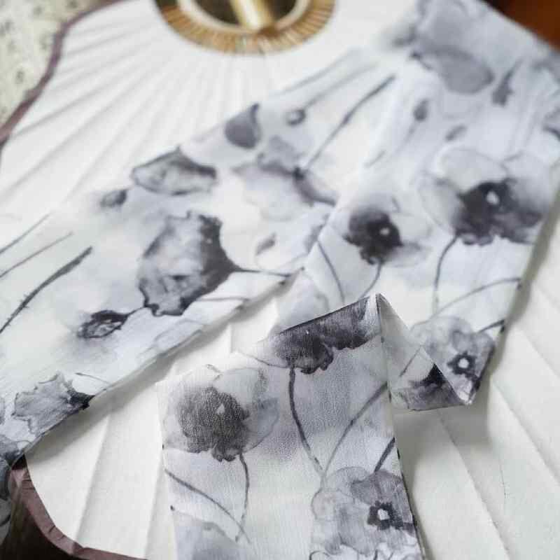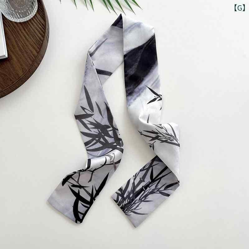 リボン 髪飾り 蘭亭序柄 シフォン ロング スカーフ 髪留め クラシック風 書画調 上品 優雅 秋 プリント柄 ポリエステル素材
