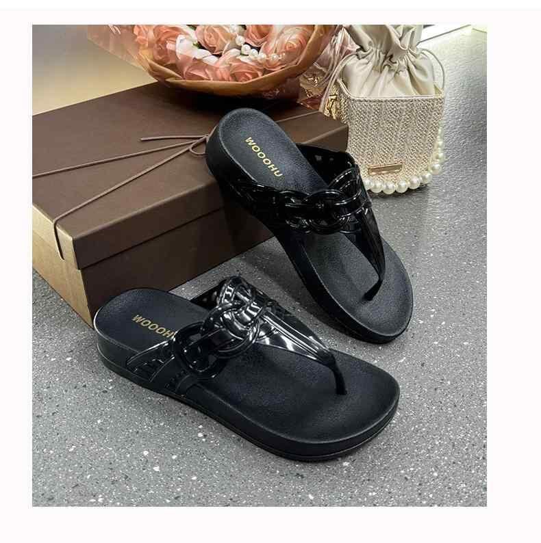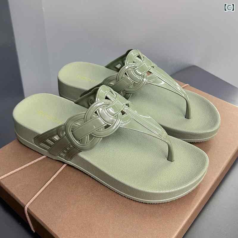 ビーチサンダル レディース 厚底 フラットソール 滑り止め 韓国風 おしゃれ カジュアル PVC素材 シワ加工 ビーチ 海水浴 リゾート ブラック オフホワイト グリーン ブラウン