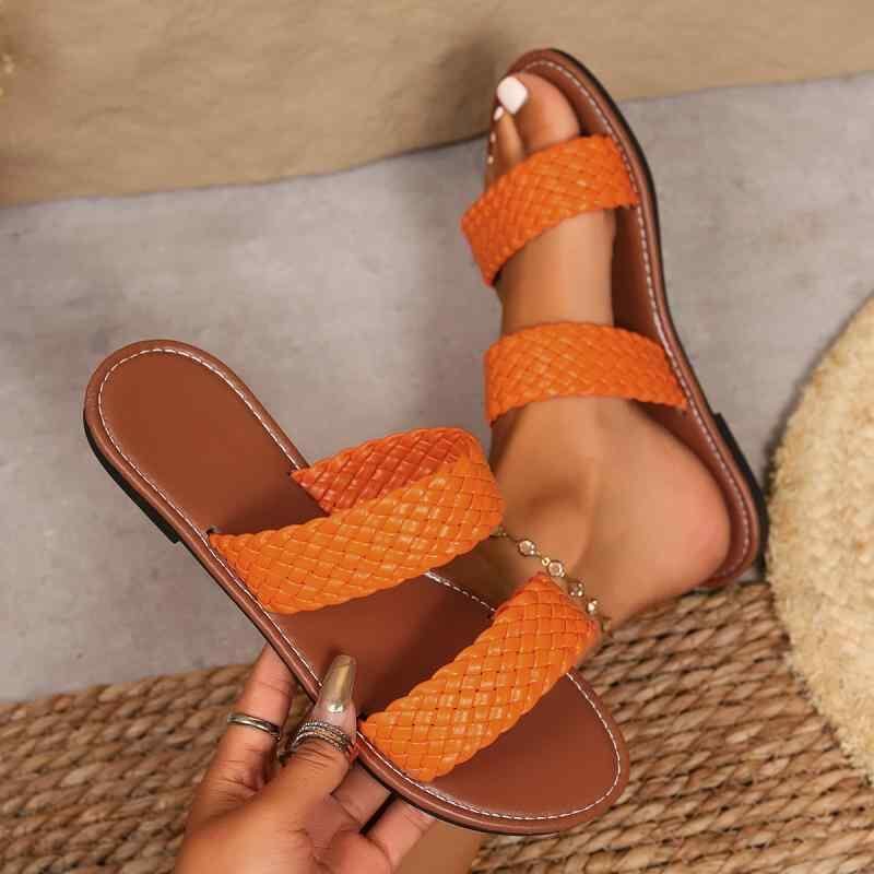 サンダル レディース 大きいサイズ フラットソール シンプル 編み込み ワンストラップ PUレザー 軽量 通気性 ビーチ リゾート タウンユース 外履き
