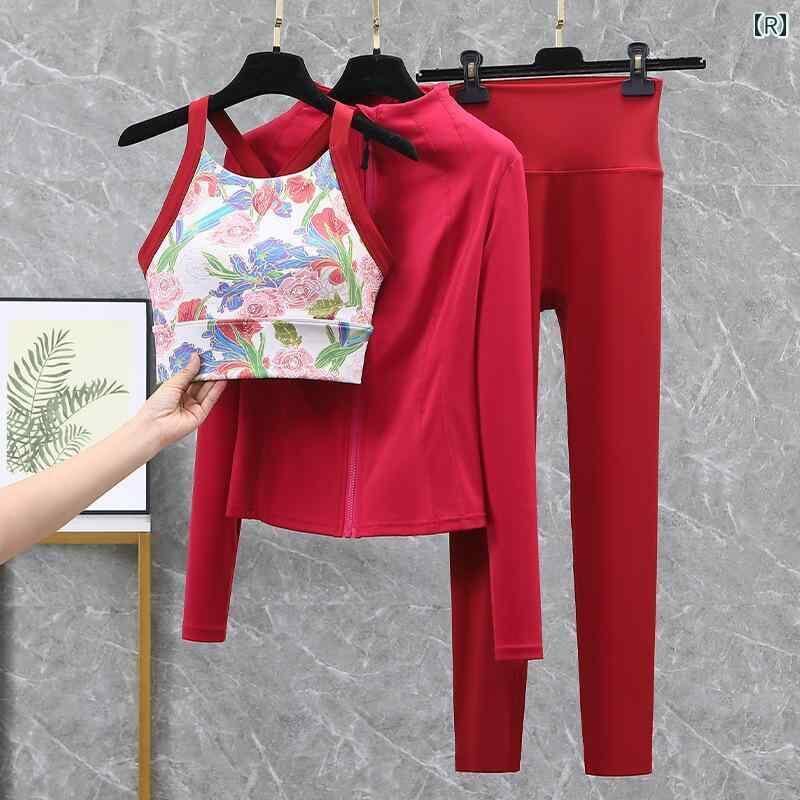 スポーツウェア レディース 3点セット ハイウエスト 裸感 速乾 ストレッチ 美脚 ヨガ レギンス ランニング フィットネス ジム トレーニング カップ付き ナイロン 春夏 普段使い