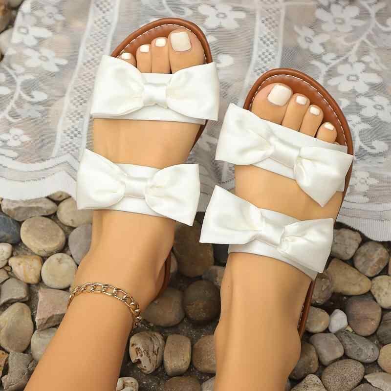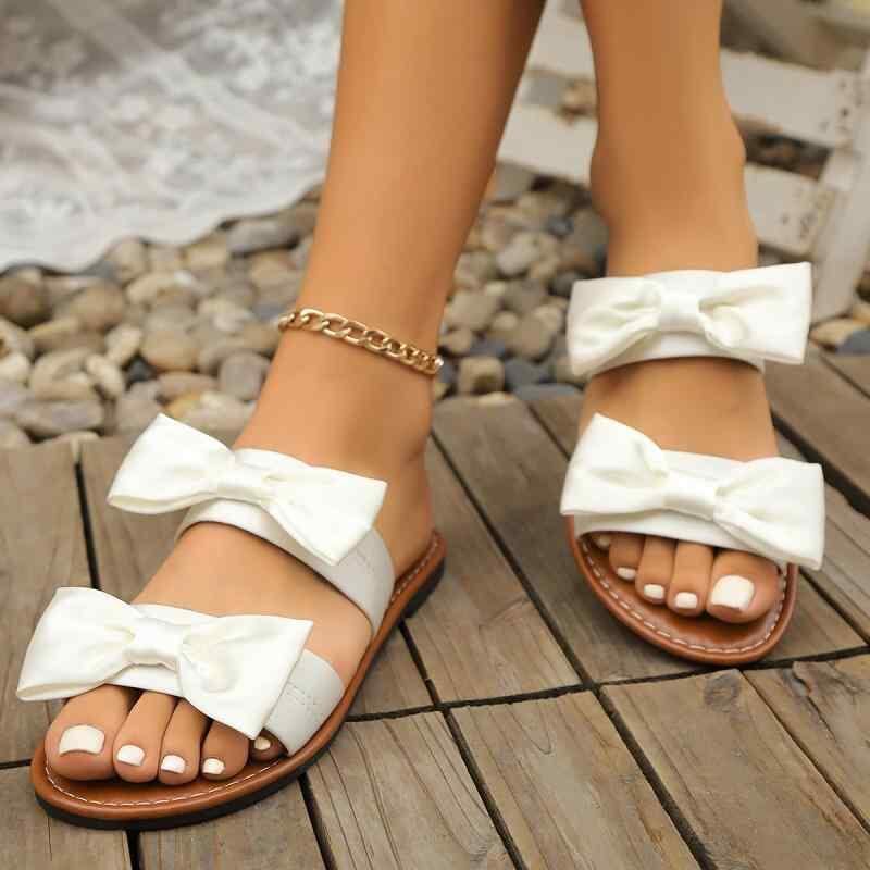 サンダル レディース ワンストラップ リボン フラット ぺたんこ 韓国風 大きいサイズ カジュアル 外履き ビーチ 海水浴 普段使い デイリーユース 布地 ラバーソール 軽量 通気性 安定感 ドット柄 水玉模様 ブラック ホワイト