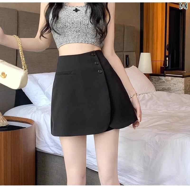 スカート レディース アシンメトリー ハイウエスト Aライン タイトミニ丈 スカパン キュロット 着痩せ効果 オフィス 通勤 きれいめ 春夏 ポリエステル ブラック グレー