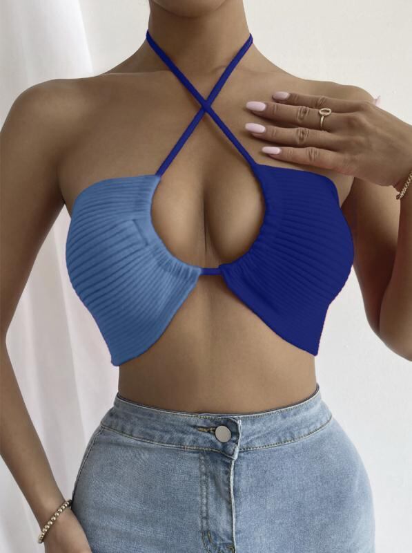 ニットキャミソール レディース トップス ホルターネック クロスストラップ ショート丈 スリムフィット セクシー 甘辛ミックス ストレッチ ポリエステル素材 こなれ感 デコルテ見せ 大人カジュアル ストリートファッション