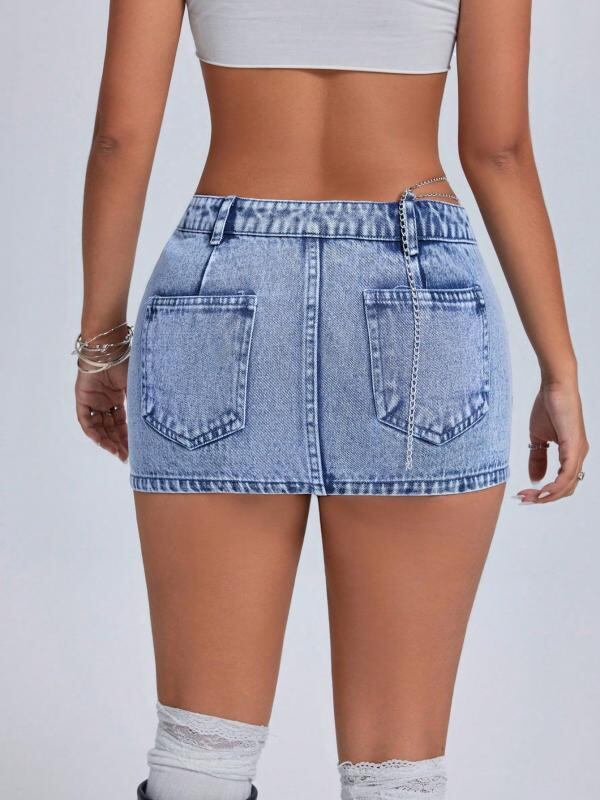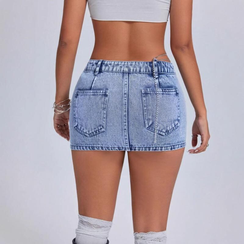 デニム ミニスカート レディース ローウエスト タイト セクシー ストリート ギャル トレンド カジュアル 無地 ポケット ブルー ノンストレッチ 春夏