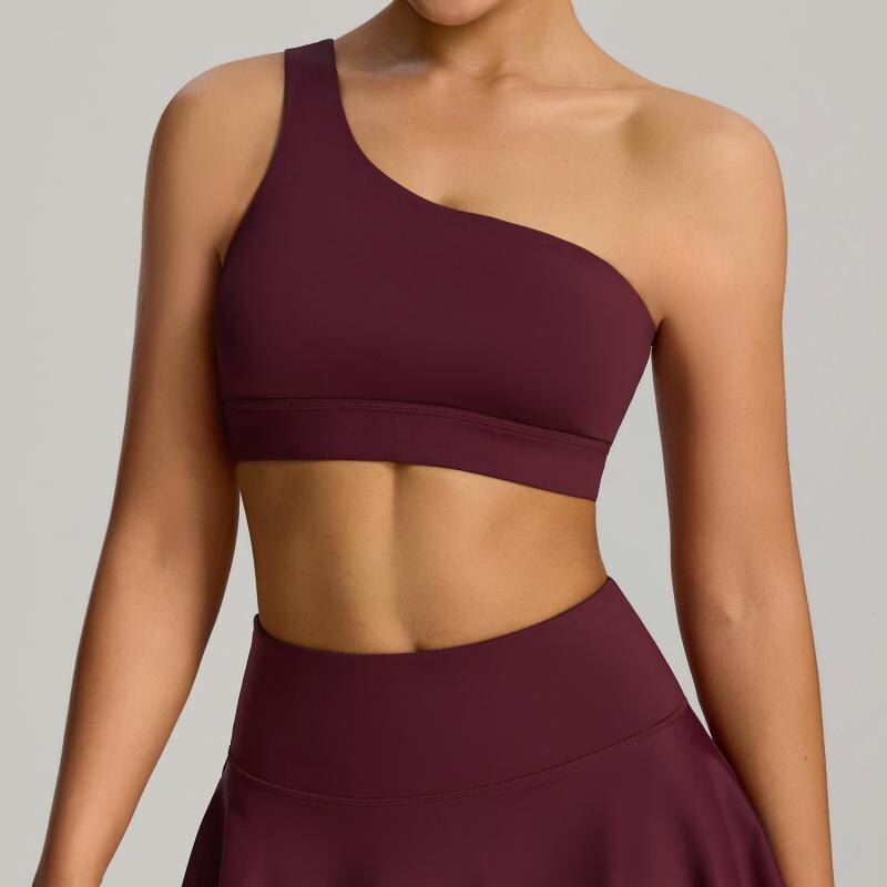 スポーツブラ レディース ワンショルダー 美背デザイン 揺れ防止 ホールド感 高伸縮性 ストレッチ ナイロン スパンデックス ヨガ ジム フィットネス ランニング ブラトップ タンクトップ セクシー オールシーズン