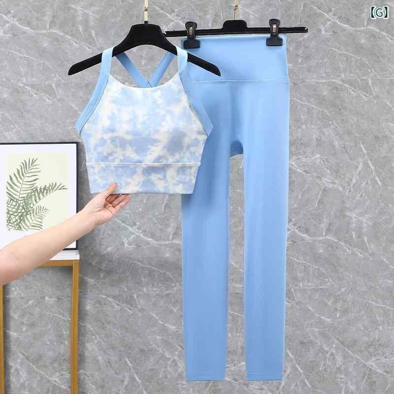 ヨガウェア プリント 3点セット フィットネス ランニング スポーツ ノースリーブ カップ付き ナイロン素材 美脚レギンス 春夏 普段使い