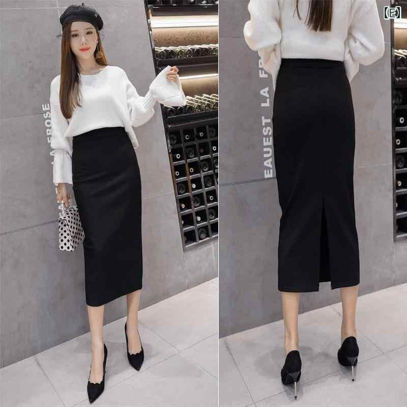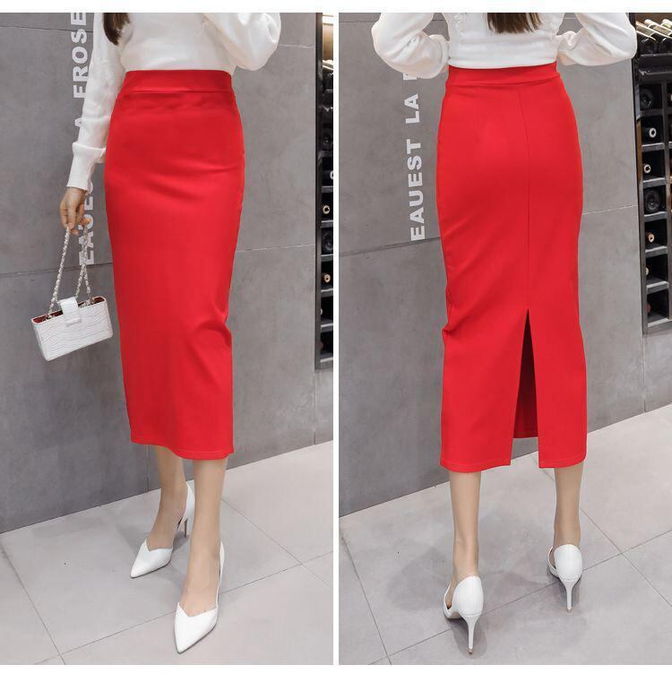 スカート レディース 春夏 オフィス 通勤 ビジネス タイト ミディ丈 ウエストゴム ストレッチ バックスリット 切り替え エレガント 上品 ポリエステル
