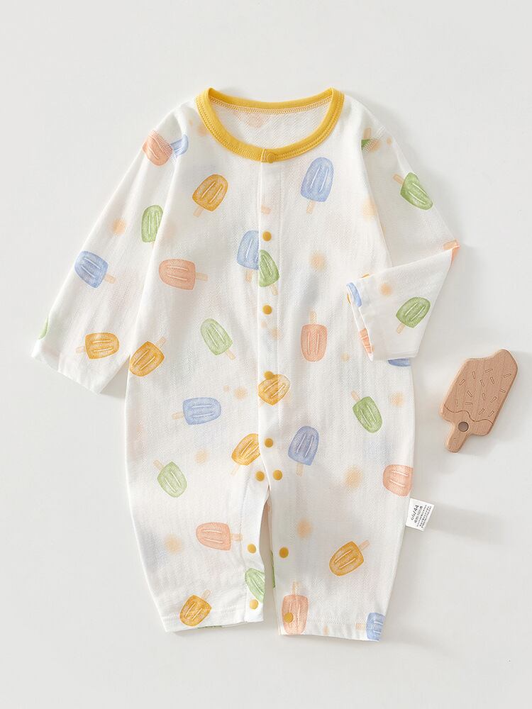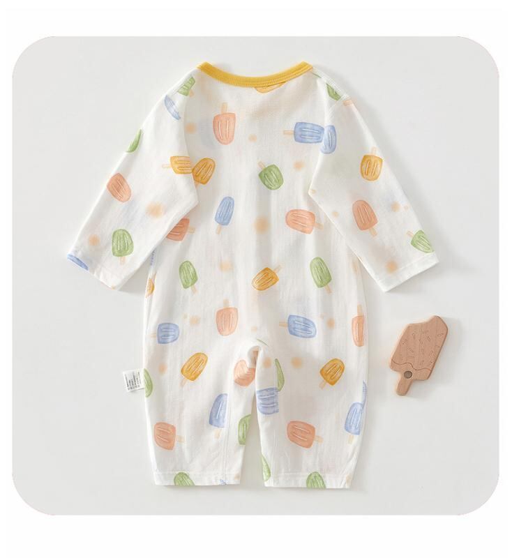 ロンパース ベビー 赤ちゃん 新生児 夏用 薄手 綿100% コットン 長袖 カバーオール パジャマ ルームウェア 冷房対策 前開き スナップボタン 快適