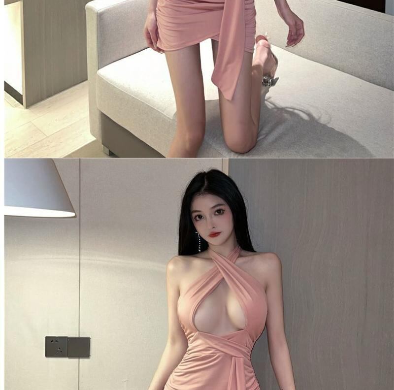 ワンピース レディース 純欲系 セクシー フェミニン クロス ホルターネック エレガント バックレス タイト ショート丈 ボディコン ノースリーブ ポリエステル 通勤 デート 春夏 ブラック ホワイト ピンク