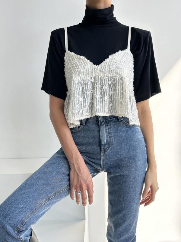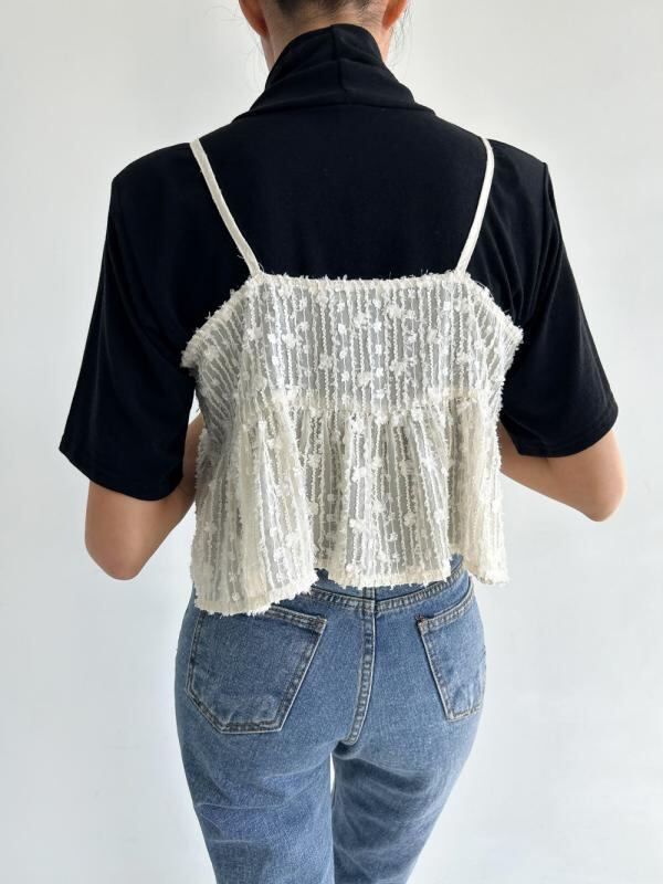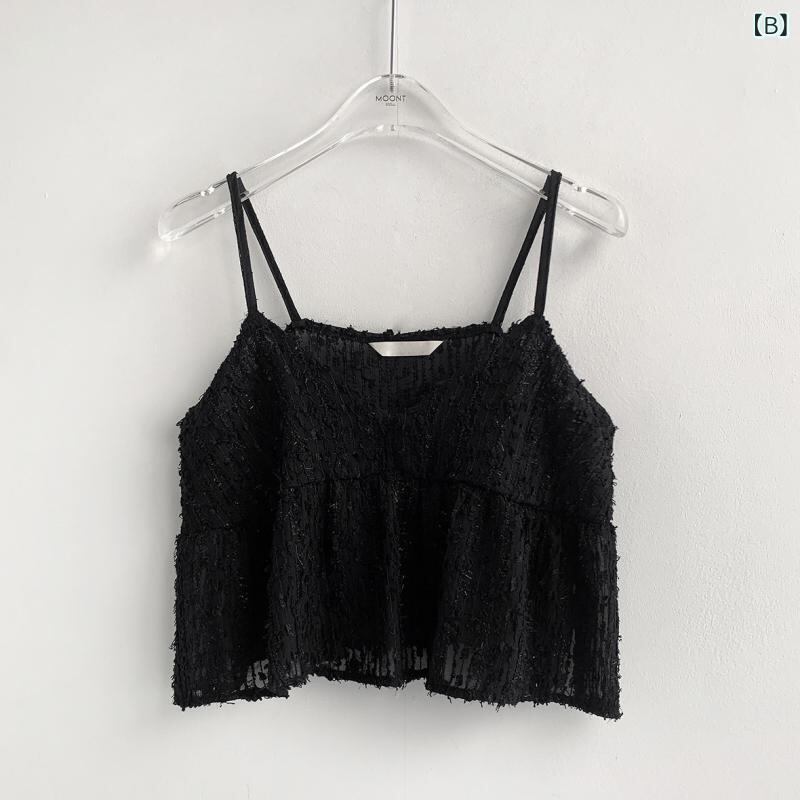 キャミソール レディース トップス 韓国風 韓流 上品 重ね着 レース 綿 コットン ショート丈 ミニ丈 Aライン 伸縮性 着回し 万能 ベージュ ブラック ダブルストラップ