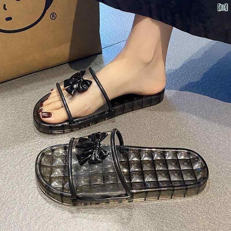 サンダル レディース おしゃれ クリスタル クリア 滑り止め ビーチサンダル 室内履き ルームシューズ シャワースリッパ 外履き 夏用 リゾート PVC 透明 プラスチック製 ホワイト ブラック