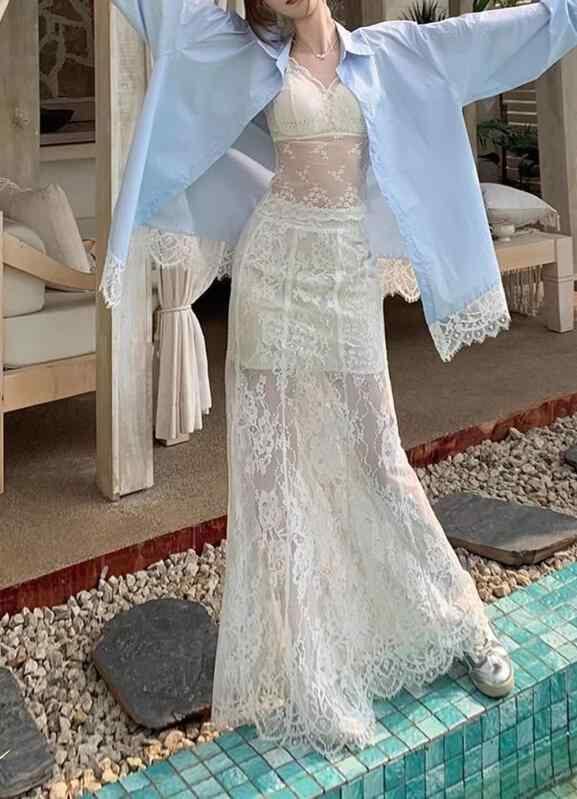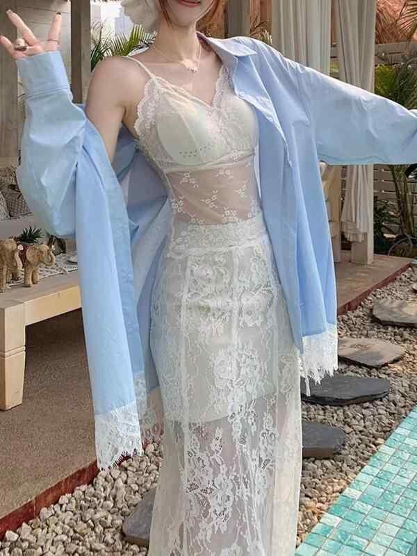 ブラウス シャツ レディース 婦人服 トップス ストライプ柄 格子柄 ブルー ポリエステル 長袖 POLO襟 ルーズ カジュアル 韓国風
