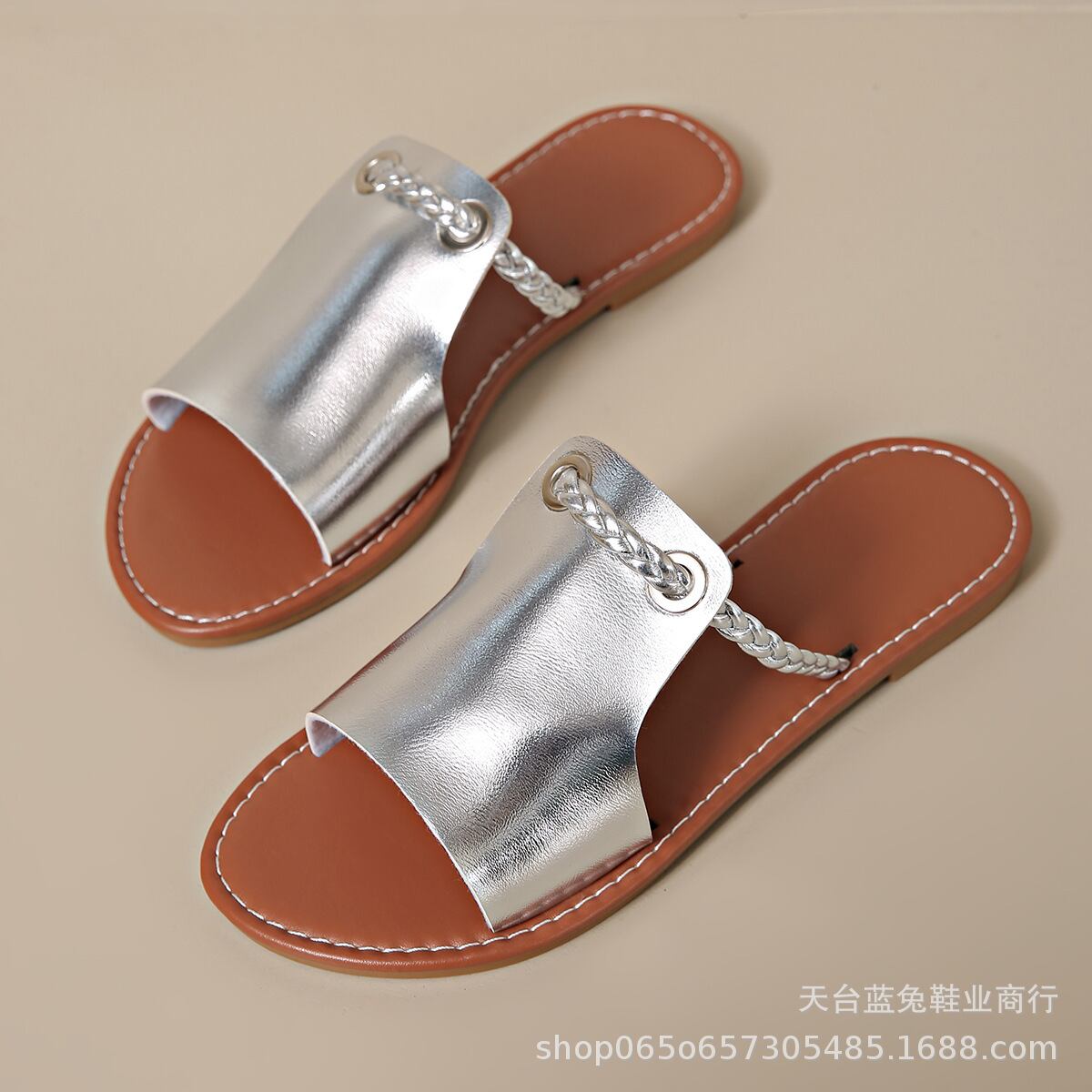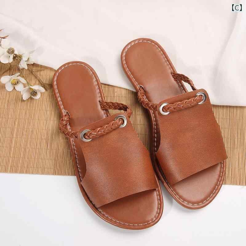 サンダル レディース ビーチサンダル フラットサンダル スリッポン シンプル 無地 編み込み 大きいサイズ ゆったり カジュアル 普段使い デイリーユース 速乾 フェイクレザー ゴム底 ワンストラップ ビーチ リゾート