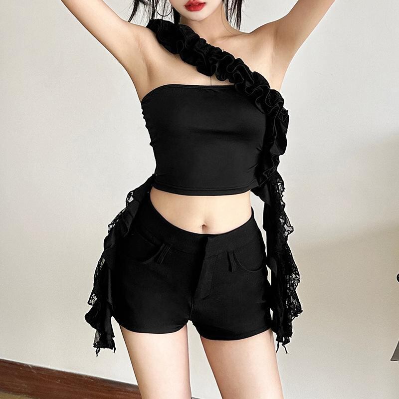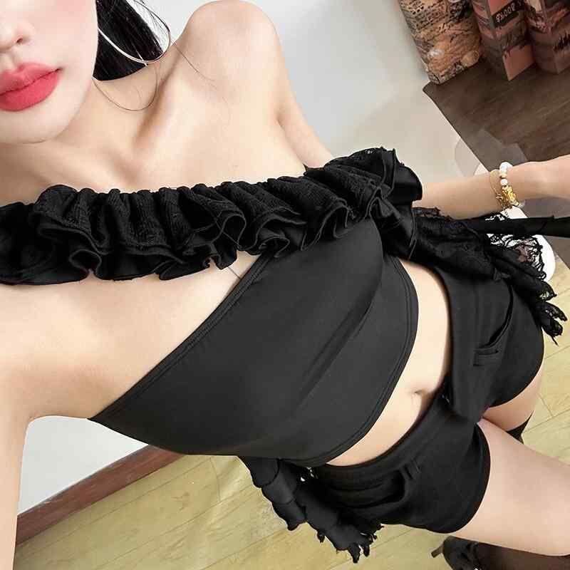 タンクトップ キャミソール レディース トップス ブラック 立体ジャカード オフショルダー ハイウエスト ショート丈 スリムフィット 着痩せ ポリエステル ストレッチ ストリート カジュアル 欧米風