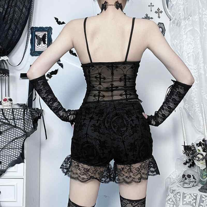 トップス レディース ダークゴシック ストリート系 セクシー スリムフィット 取り外し可能チェーン キャミソール タンクトップ ショート丈 ブラック ナイロン スパンデックス ストレッチ 普段使い ダンス衣装