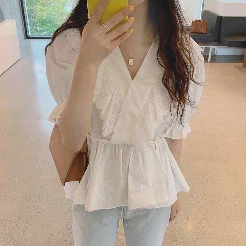 ・素材: シェニール、スパンデックス90-95%・スタイル: フリル、無地・袖丈: ノースリーブ・フィット: ゆったり・ネックライン: Vネック・袖のタイプ: プリンセススリーブ・カラー: ホワイト・サイズ: XS, XXS, S, M, L, XL, 2XL, 3XL・系統: お姉系・前開き: プルオーバー・カテゴリ: シャツ