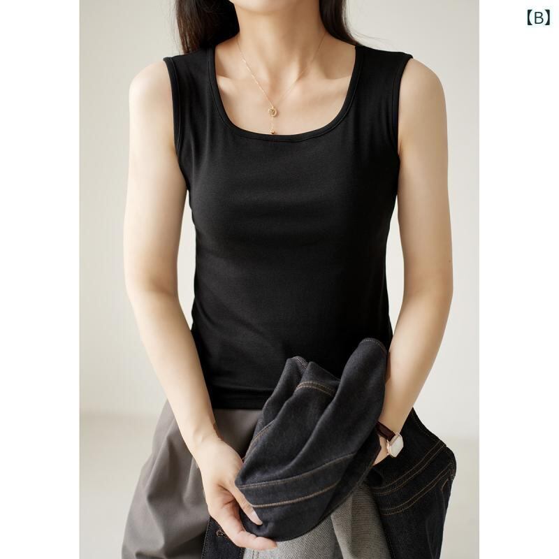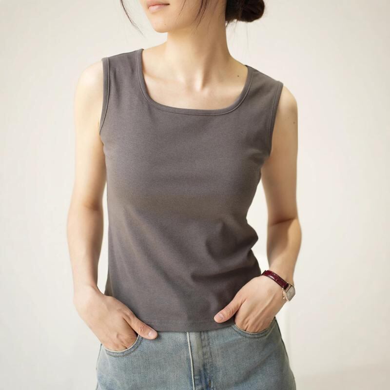 タンクトップ レディース 着痩せ スリムフィット 背中見せ レーサーバック 太めストラップ 脇肉カバー インナー 重ね着 綿 コットン 伸縮性 無地 レギュラー丈 カジュアル デイリーユース ホワイト ブラック グレー モカ