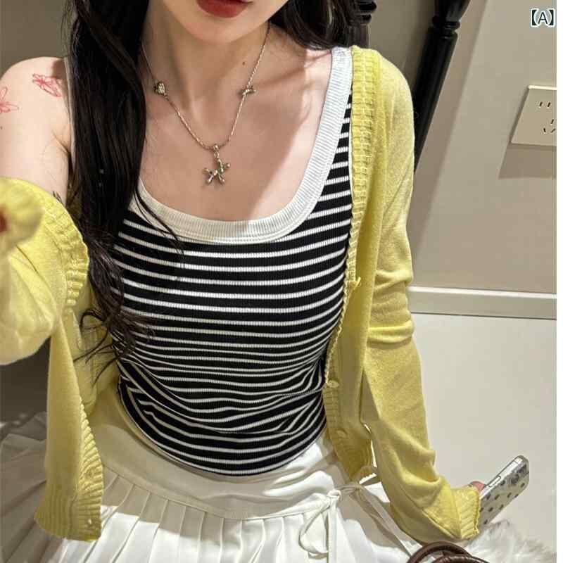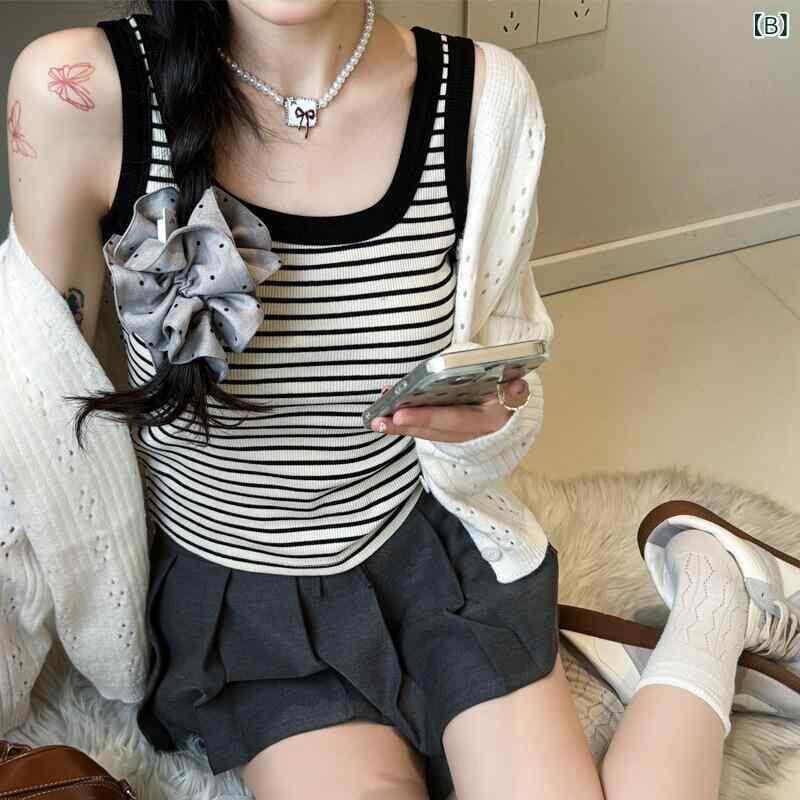 キャミソール レディース スクエアネック ストライプ柄 ノースリーブ トップス 綿100% 細見え スリムフィット インナー レイヤード 重ね着 一枚着 アウター着回し 伸縮性 普段使い