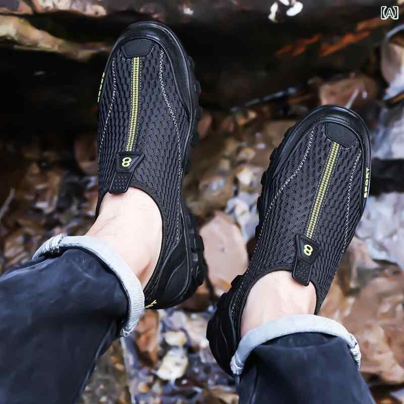 サンダル メンズ 夏用 通気性 メッシュ アッパー スリッポン アウトドア スポーツ カジュアル 旅行 ビーチ 軽量 ラウンドトゥ PUソール