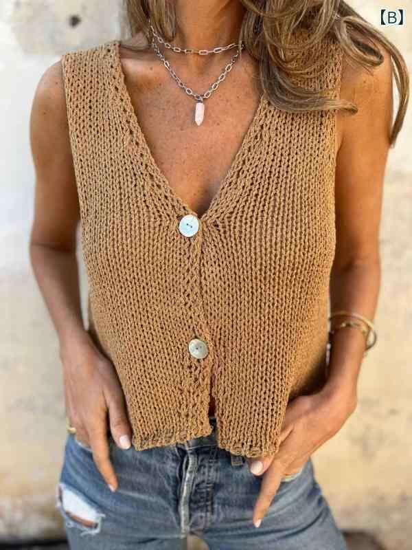 ベストカーディガン レディース シングルボタン Vネック ノースリーブ 前開き コットン 綿混 無地 きれいめ 通勤 カジュアル デイリー トップス