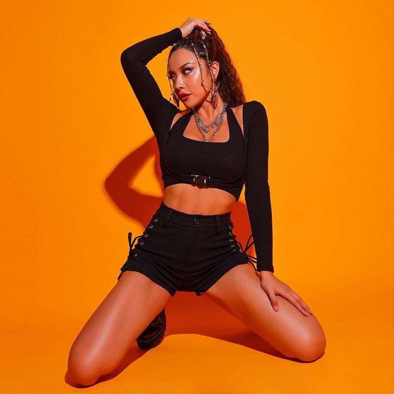 ダンスウェア レディース ポールダンス GOGOダンサー リードダンサー ステージ衣装 セクシー セットアップ ナイトクラブ バー 練習着 パフォーマンス 発表会 ポリエステル素材
