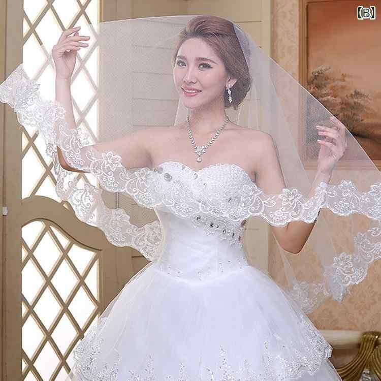 ウェディングベール 新婦用 ブライダル シンプル 花柄レース ロング丈 ホワイト オフホワイト アイボリー 3メートル チャペルスタイル 単層 挙式 披露宴 前撮り チュール素材