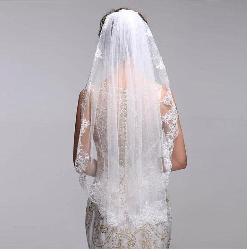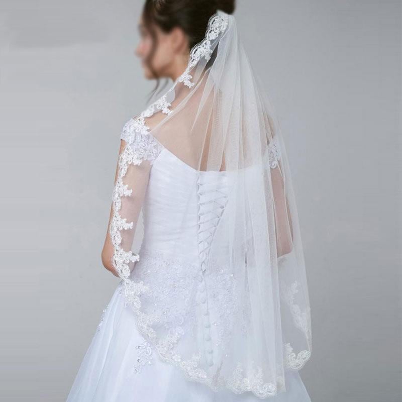 ウェディングベール ブライダル 欧米風 シングルレイヤー コーム付き レース チュール素材 結婚式 披露宴 ウェディングドレス用 ヘッドドレス 髪飾り ホワイト アイボリー アクセサリー