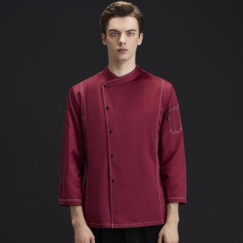 コックコート メンズ 長袖 通気性抜群 吸湿速乾 厨房 ホテル レストラン 飲食店 ユニフォーム 作業服 綿混 ポリエステル 春夏 ホワイト レッド ブルー