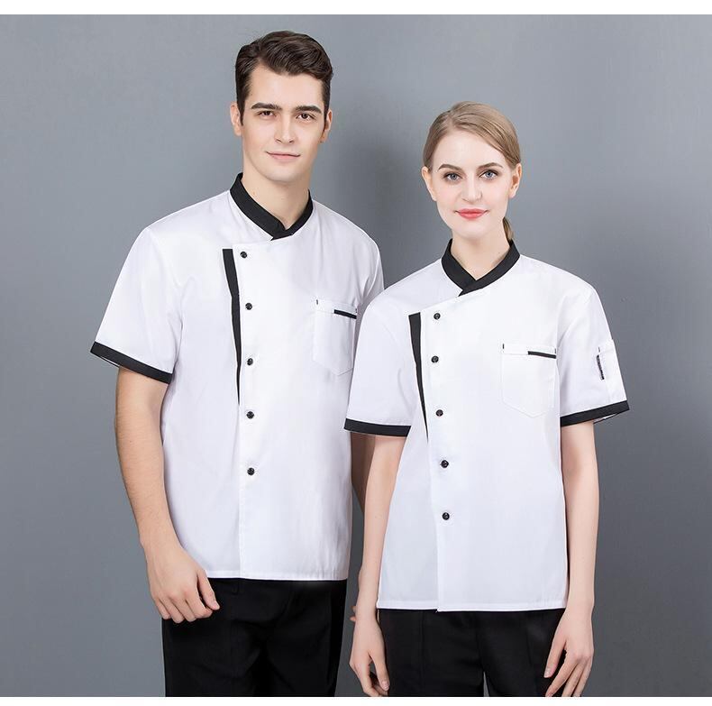 調理服 メンズ 半袖 夏 コックコート 料理人服 吸湿速乾 通気性 薄手 ブラック ホテル レストラン 飲食店 厨房 作業着 ユニフォーム 快適