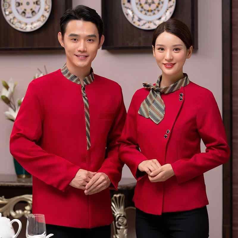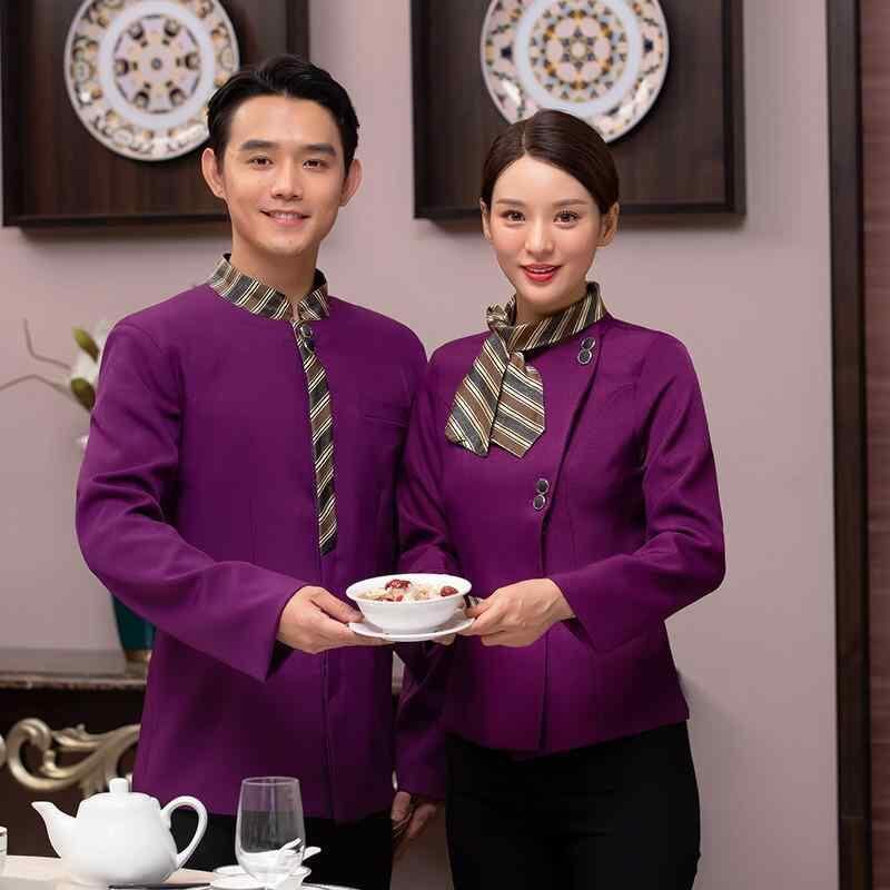 ユニフォーム 男女兼用 春夏 半袖 ホテル 飲食店 レストラン サービス業 接客 業務用 制服 作業着 綿混 ポリエステル 吸湿速乾 黒 紫 赤