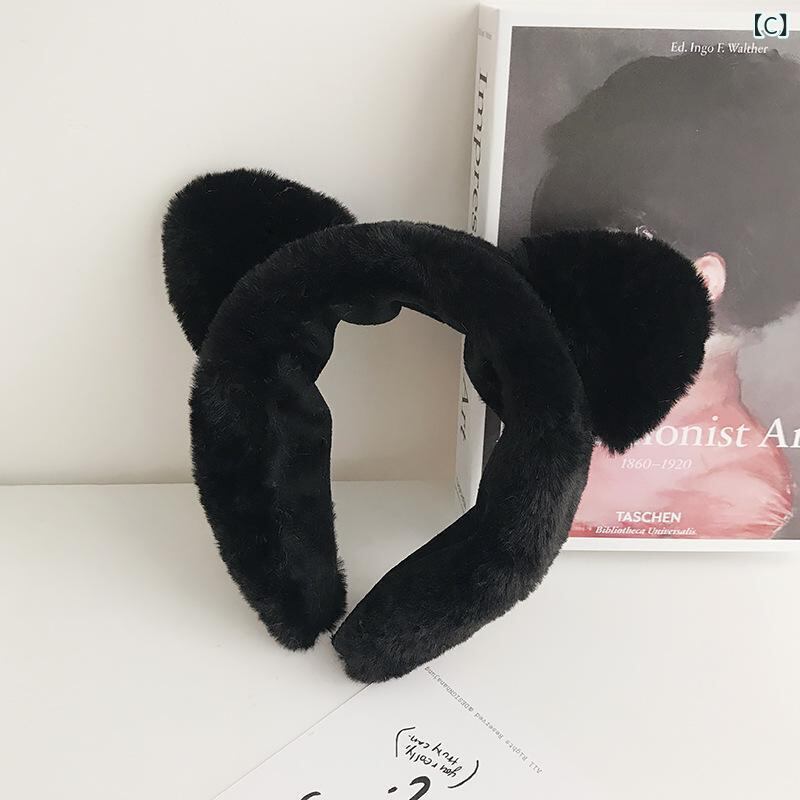 ヘアバンド レディース 韓国風 猫耳 もこもこ かわいい 洗顔用 カチューシャ おしゃれ 布製 秋冬 ピンク ホワイト ブラック メイクアップ ヘアアクセサリー