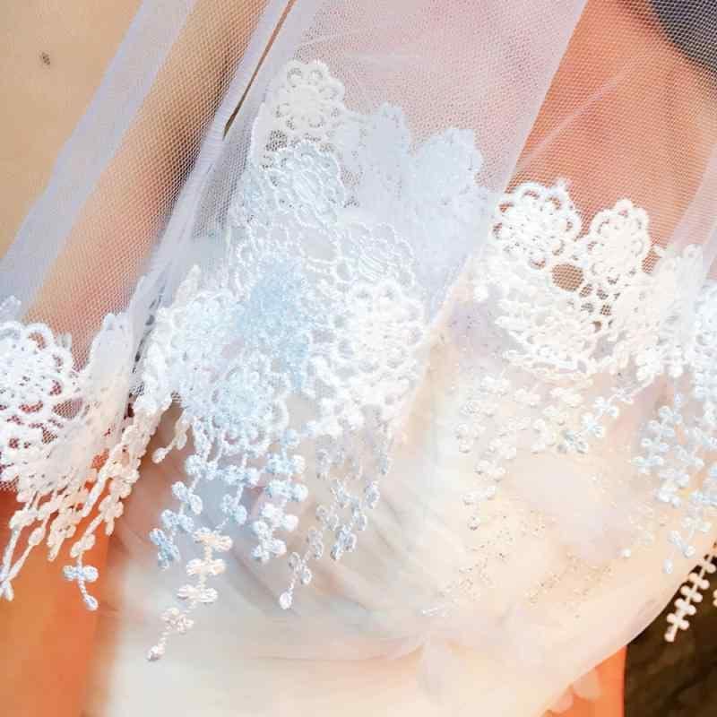 ベール レディース ウェディング ブライダル 結婚式 ホワイト エルボー丈 水溶性レース フリンジ ソフトチュール シングルレイヤー 欧風 挙式 前撮り