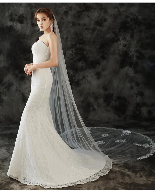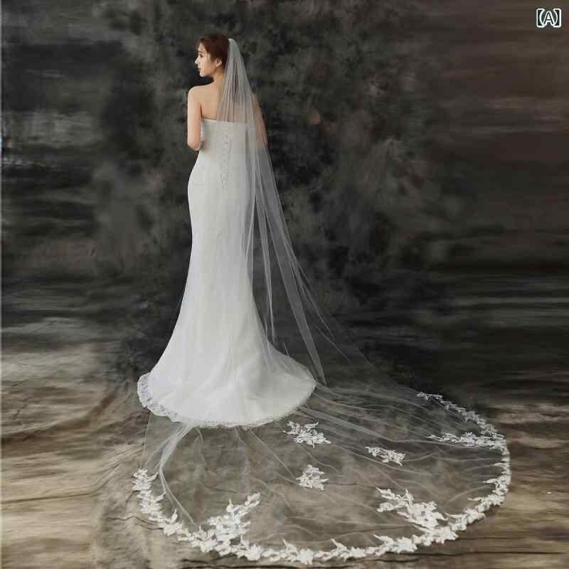 ウェディングベール 花嫁 ブライダル ロング丈 トレーン 超ロング レース シングルレイヤー 韓国風 オフホワイト ピュアホワイト レトロ ヴィンテージ 結婚式 カテドラル 挙式小物