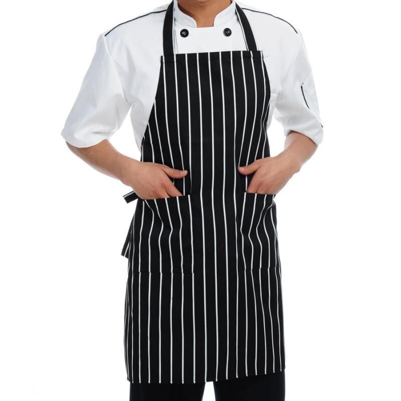 エプロン 業務用 男女兼用 フリーサイズ 袖なし 防水 撥水加工 防汚 黒白ストライプ柄 黒白チェック柄 紅白ストライプ柄 黒白食器柄 コーヒーストライプ柄 黒赤白ストライプ柄 モダン シンプル