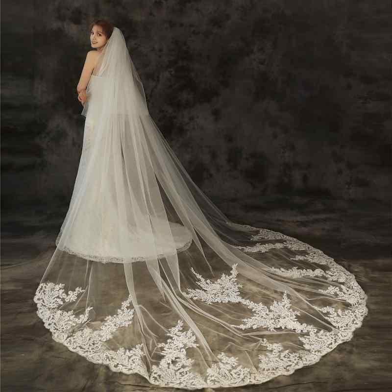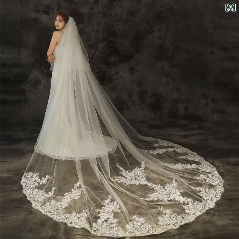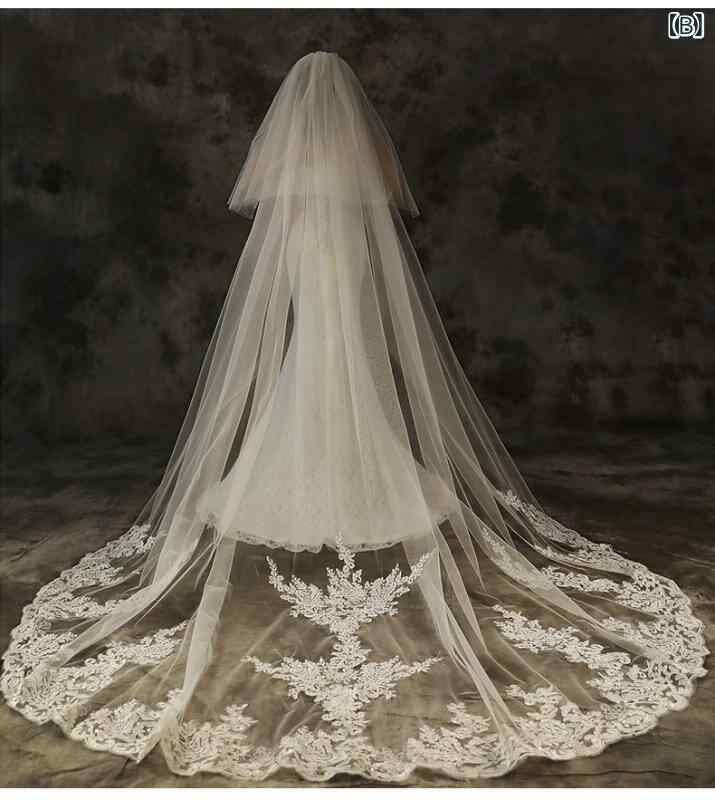 ヘッドドレス 花嫁 ウェディングベール 春夏 ロング丈 トレーン付き レース フェイスベール 3m ダブルレイヤー 結婚式 披露宴 挙式 前撮り オフホワイト 純白