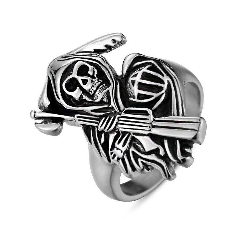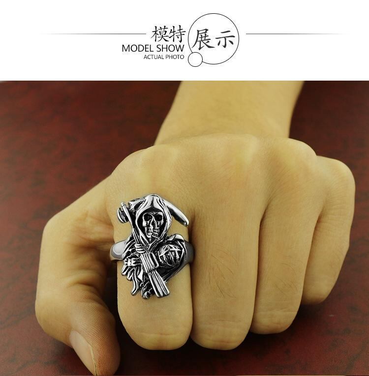 指輪 メンズ 男性用 パンク ロック スカル ドクロ 鎌型 チタン鋼製 レトロ ヴィンテージ クール 個性的 アクセサリー リング スチールカラー