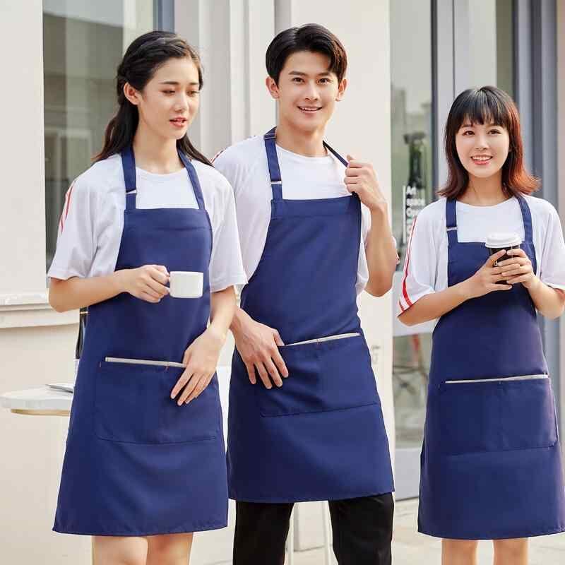 エプロン 男女兼用 ロゴ入り 飲食店 レストラン カフェ 制服 サービスユニフォーム 綿混 ポリエステル 吸湿速乾 ショート丈 ウエストエプロン 業務用 ブラック 他