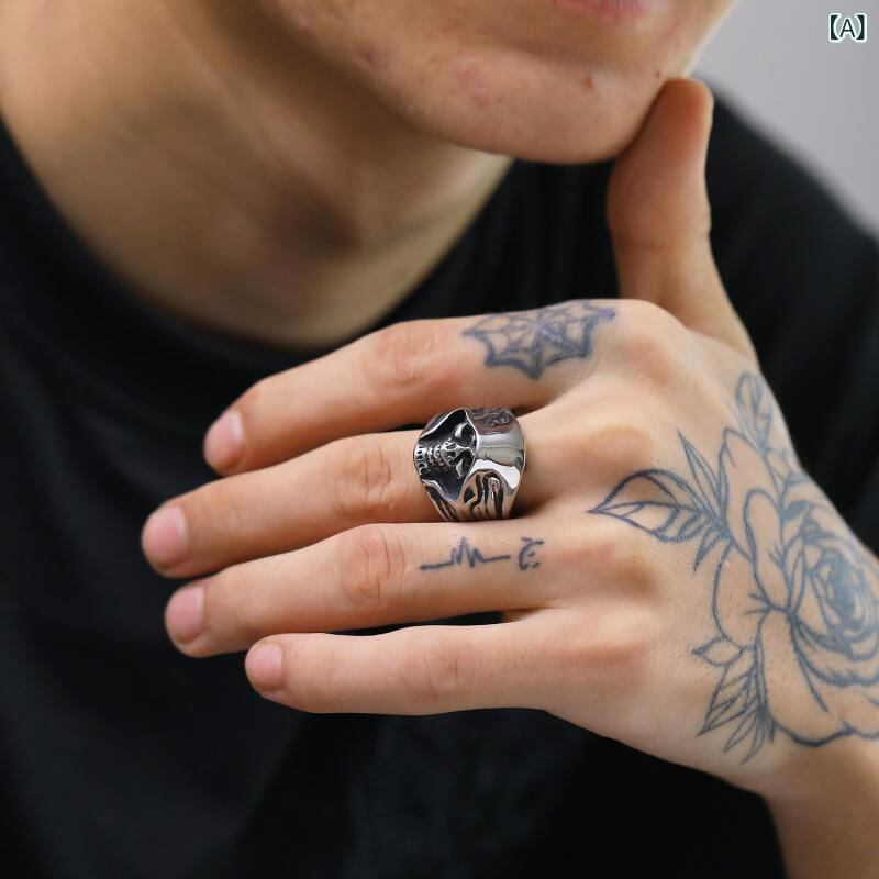 リング メンズ チタン鋼 スカル ブラック ヴィンテージ パンク 指輪 ドクロ 個性的 ファッション アクセサリー 男性用 シルバー ゴールド バイカラー