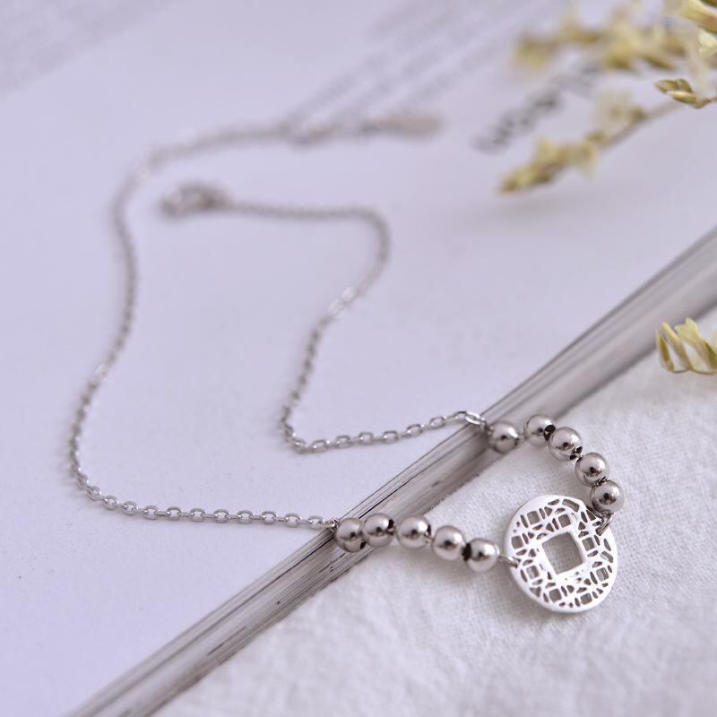 アンクレット レディース S925純銀 銅銭モチーフ 金のインゴット ラッキーアイテム 小粒丸玉 電気メッキ加工 華奢 シンプル 韓国風 足元アクセサリー