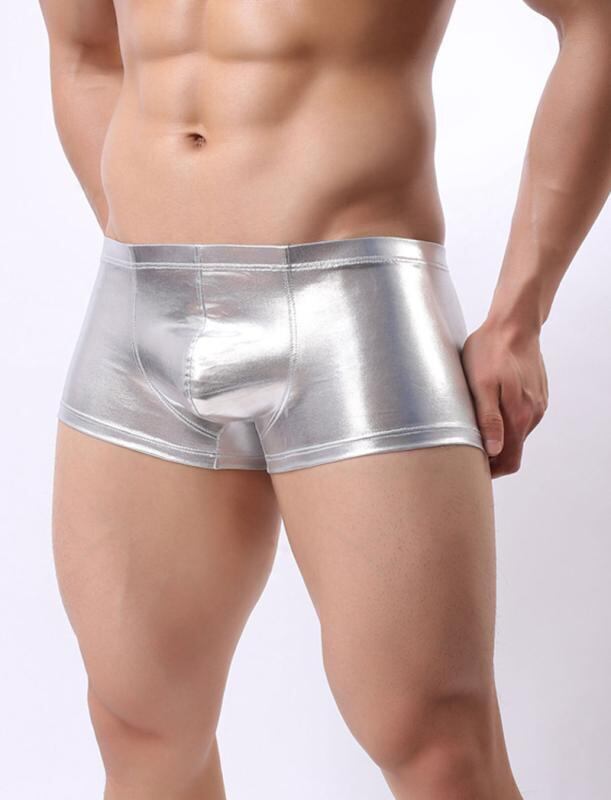 ボクサーパンツ メンズ 男性用 フェイクレザー 合皮 エナメル ローライズ 低ウエスト セクシー U字ポーチ フロントカップ ブラック ゴールド シルバー 下着 インナー