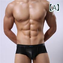 ボクサーパンツ メンズ 男性 ローライズ フェイクレザー メッシュ 下着 ナイロン 綿混 通気性 吸湿速乾 無地 ブラック