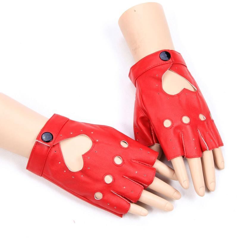 グローブ レディース ハート型 指なし 薄手 PUレザー 滑り止め 日焼け対策 ヨガ ダンス パフォーマンス ポールダンス 可愛い 夏