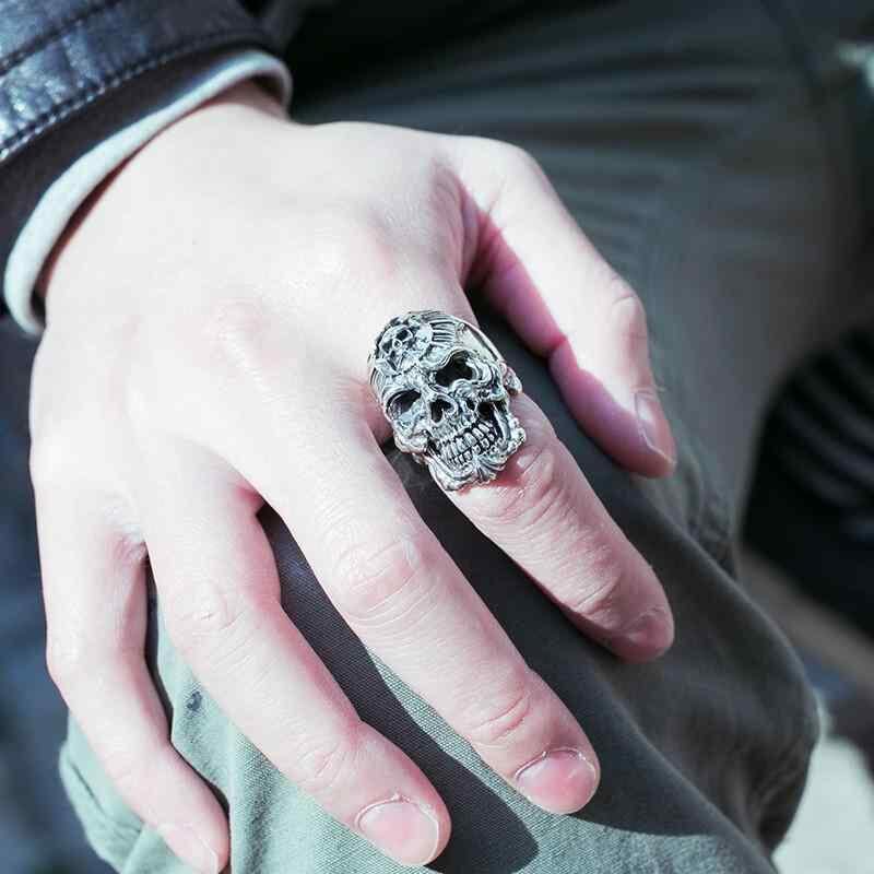 指輪 リング メンズ 男性用 スカル 髑髏 ヒップホップ ストリート 個性的 ユニーク 大ぶり 存在感 欧米風 レトロ ヴィンテージ 合金製 アクセサリー 普段使い
