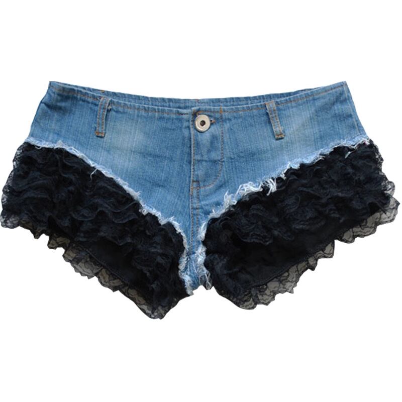ホットパンツ ショートパンツ レディース PUレザー レース 切り替え セクシー 超ローライズ ナイトクラブ ポールダンス 細見え 春夏 ブラック