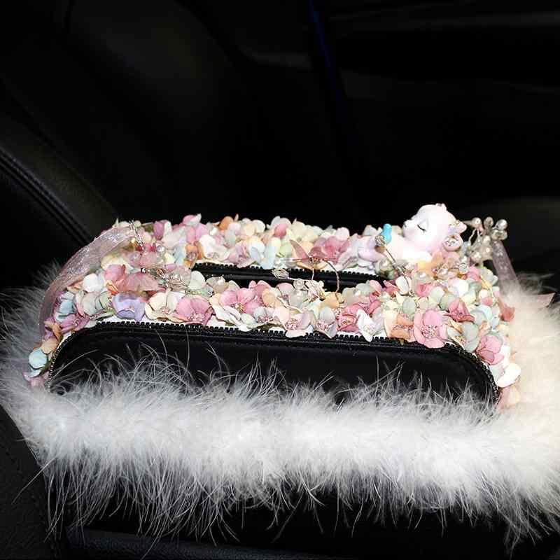 ティッシュケース 車載 車用 鹿モチーフ かわいい おしゃれ フェイクフラワー 樹脂製 レザー 車内 置き型 カーインテリア雑貨