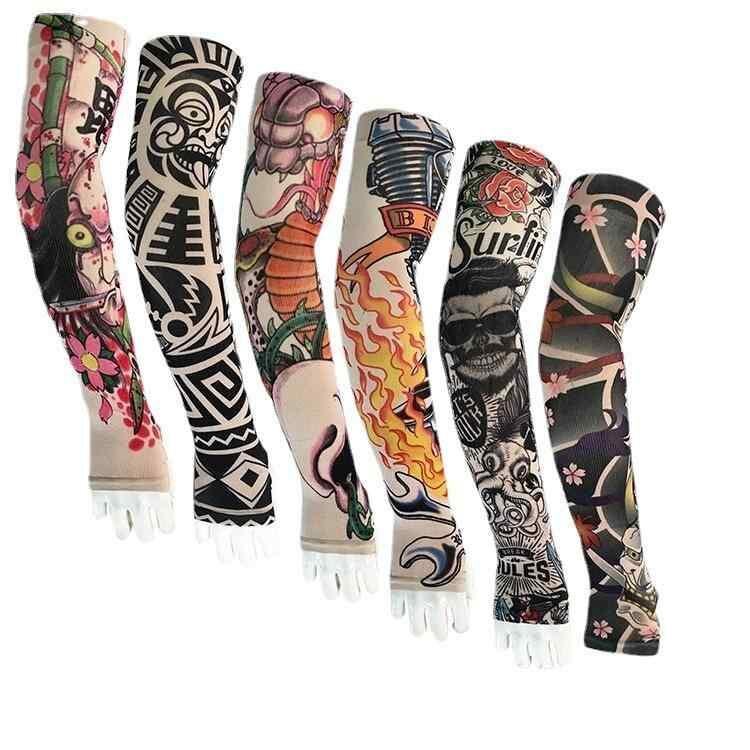 アームカバー 腕カバー 男女兼用 タトゥー柄 接触冷感 ひんやり UVカット 日焼け防止 指穴付き 吸湿速乾 伸縮性 滑り止め スポーツ アウトドア サイクリング ドライブ ゴルフ 登山 ランニング 野球 春夏